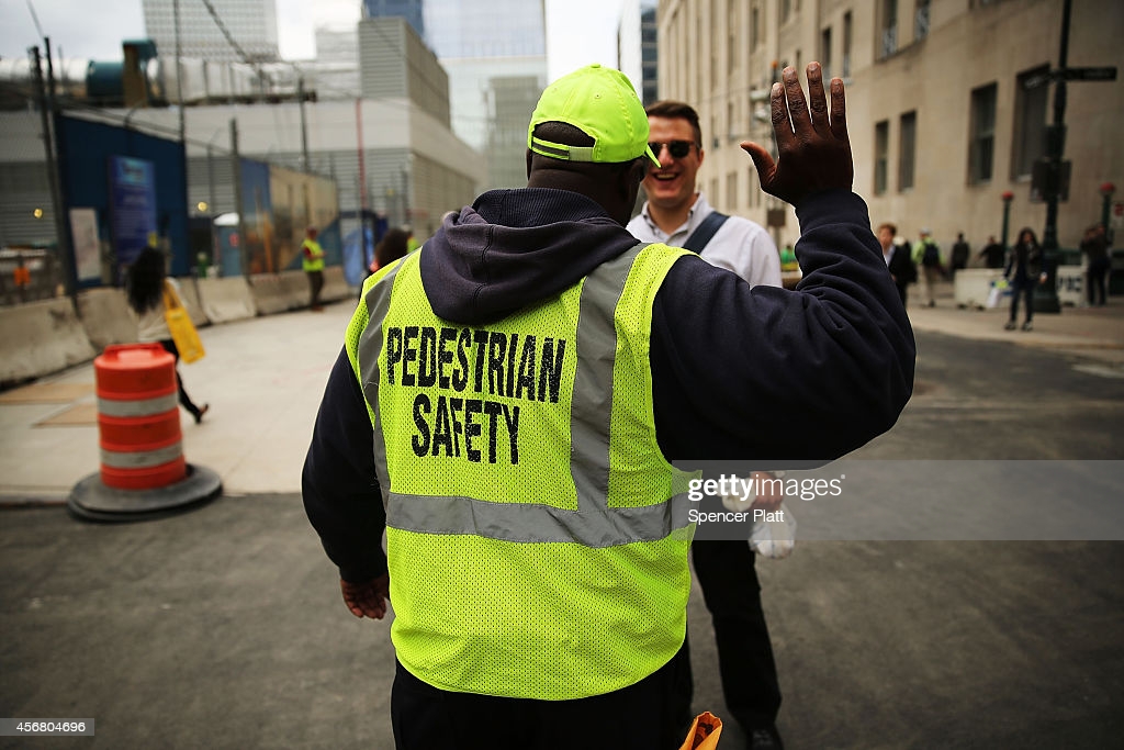 An officer controls traffic under 1 World Trade Center on October 7, 2014 in New York City. (Photo by Spencer Platt/Getty Images)